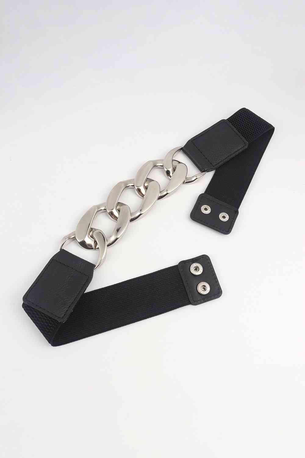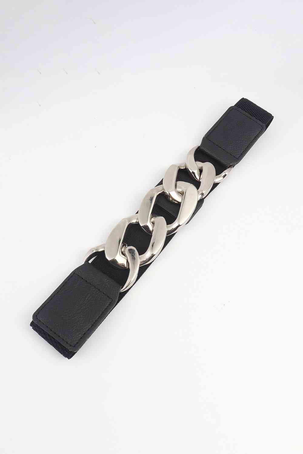Chain Detail Elastic Belt Black/Silver One Size Accessories by HayyaH | HayyaH