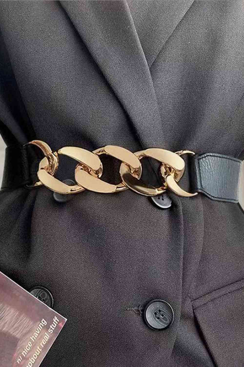 Chain Detail Elastic Belt Black/Gold One Size Accessories by HayyaH | HayyaH