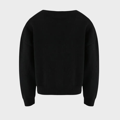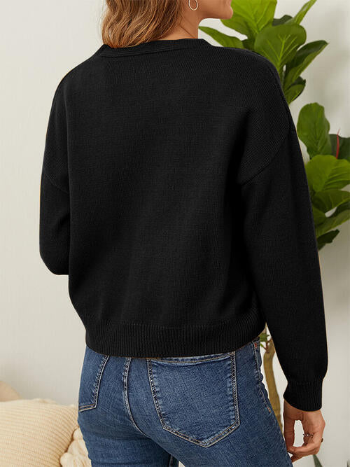Flower Button Front Dropped Shoulder Cardigan