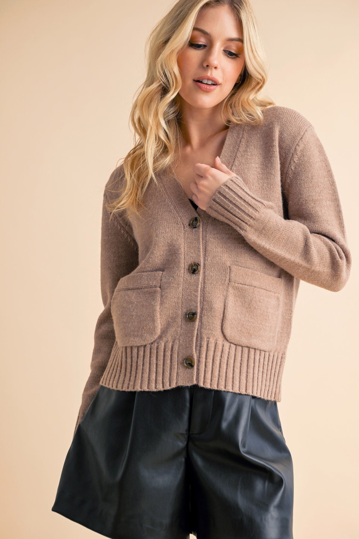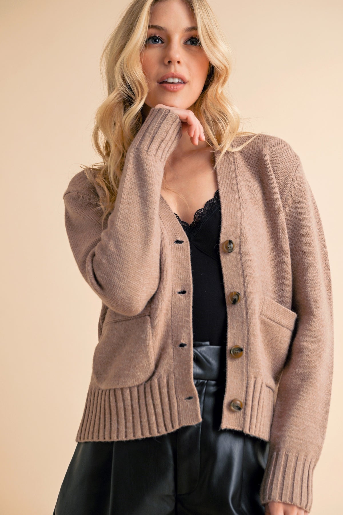 The Ribbed Hem Button Down V-Neck Cardigan is a versatile and stylish piece that combines classic design with trendy details. The ribbed hem adds texture and interest to the cardigan, while the button-down and V-neck design offer a sophisticated look.