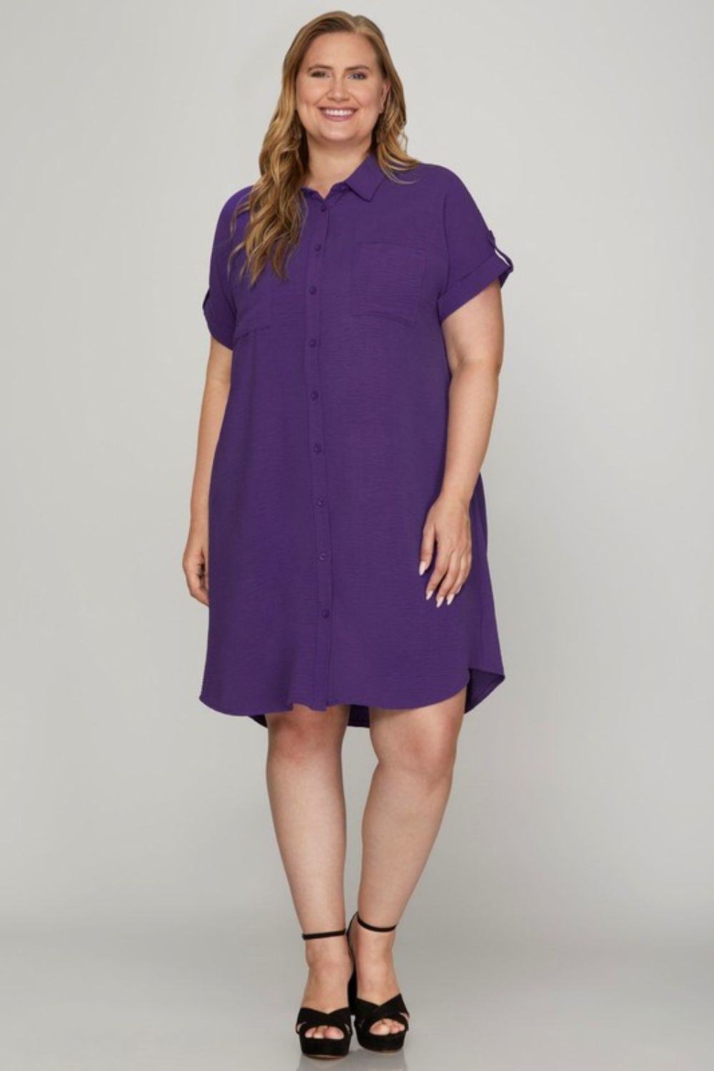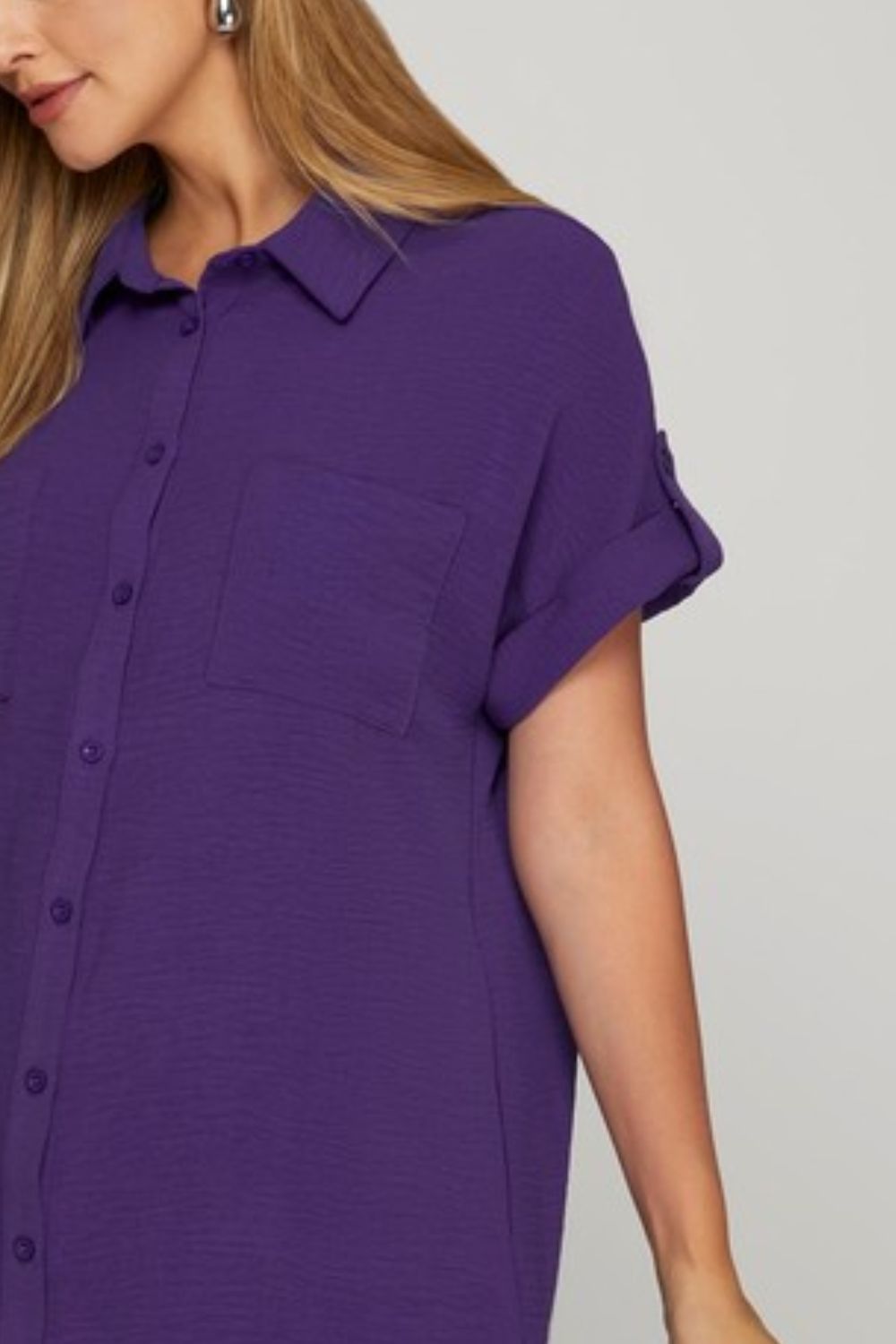 The Button Down Short Sleeve Woven Shirt Dress is a classic and versatile piece for your wardrobe. This dress features a button-down front, short sleeves, and a woven fabric construction. Its simplistic design makes it easy to dress up or down for various occasions. Pair it with sandals for a casual daytime look or dress it up with heels and accessories for a more polished ensemble.