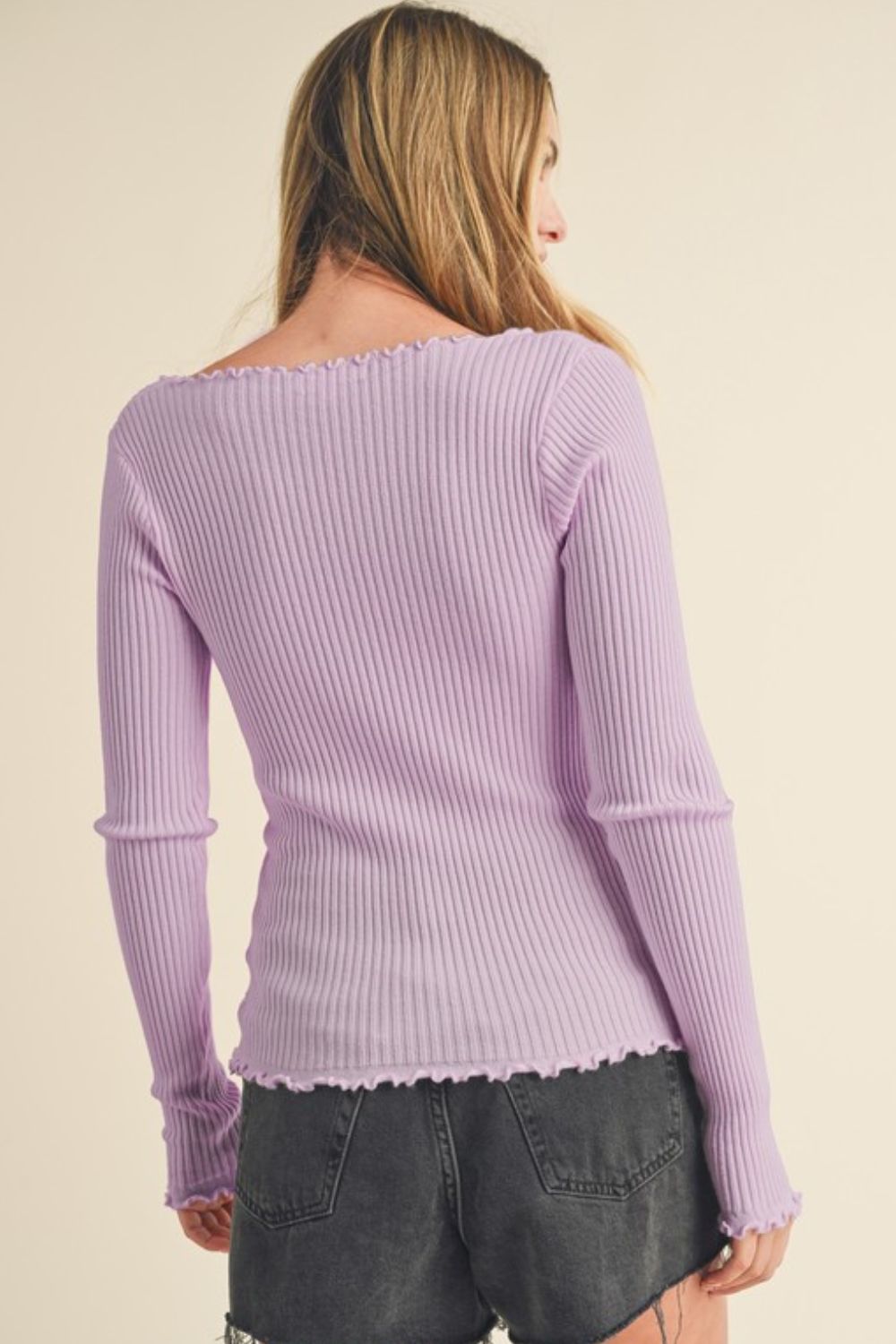 The Lettuce Hem Scoop Neck Long Sleeve Knit Top is a stylish and versatile piece featuring a trendy lettuce hem detail. With a flattering scoop neck and long sleeves, this top is perfect for cooler weather. Made from comfortable knit fabric, it offers a cozy and stretchy fit. Pair this top with jeans or skirts for a casual yet polished look.