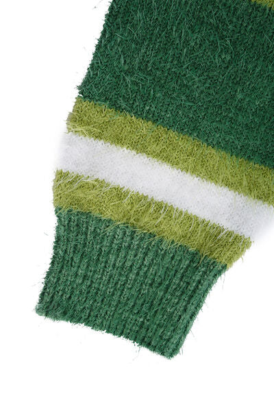 Striped Button Up Dropped Shoulder Cardigan