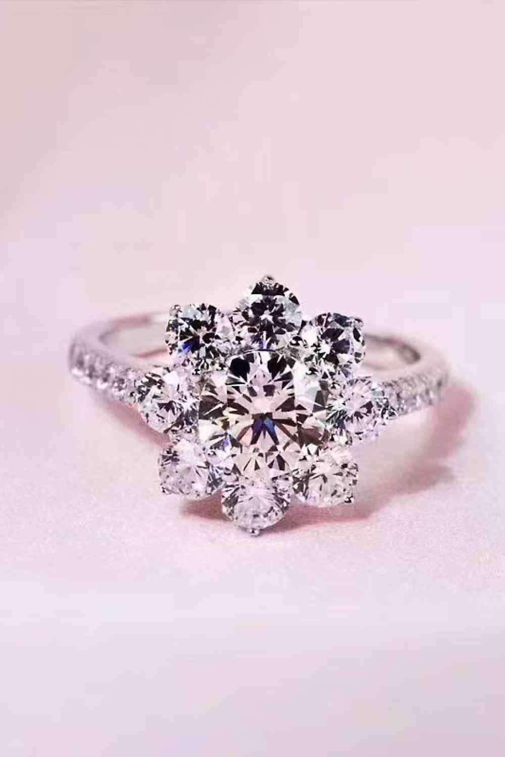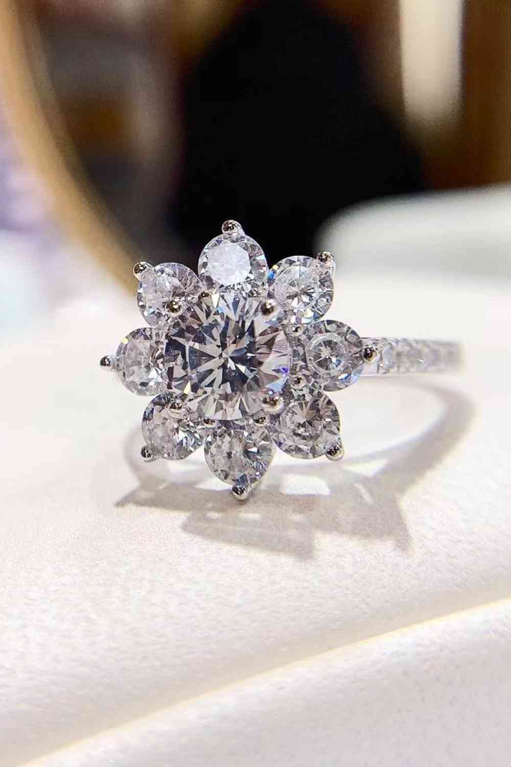 Made of 925 sterling silver and 1-carat moissanite, this flower ring has a modern look that will work with any outfit. Pair it with your favorite jeans, or wear it on any other occasion to complete your look.