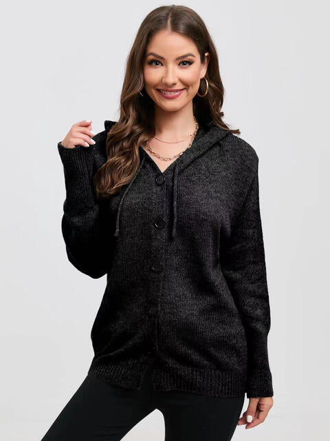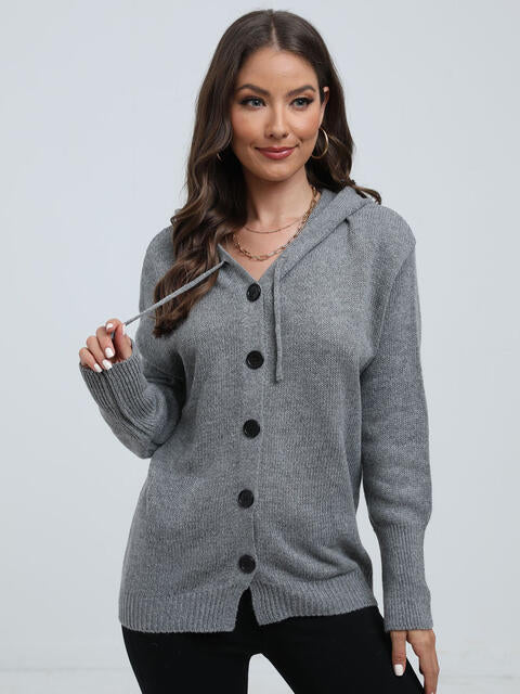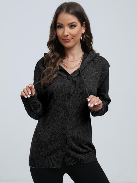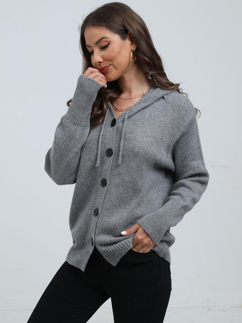 Button Down Drawstring Hooded Cardigan