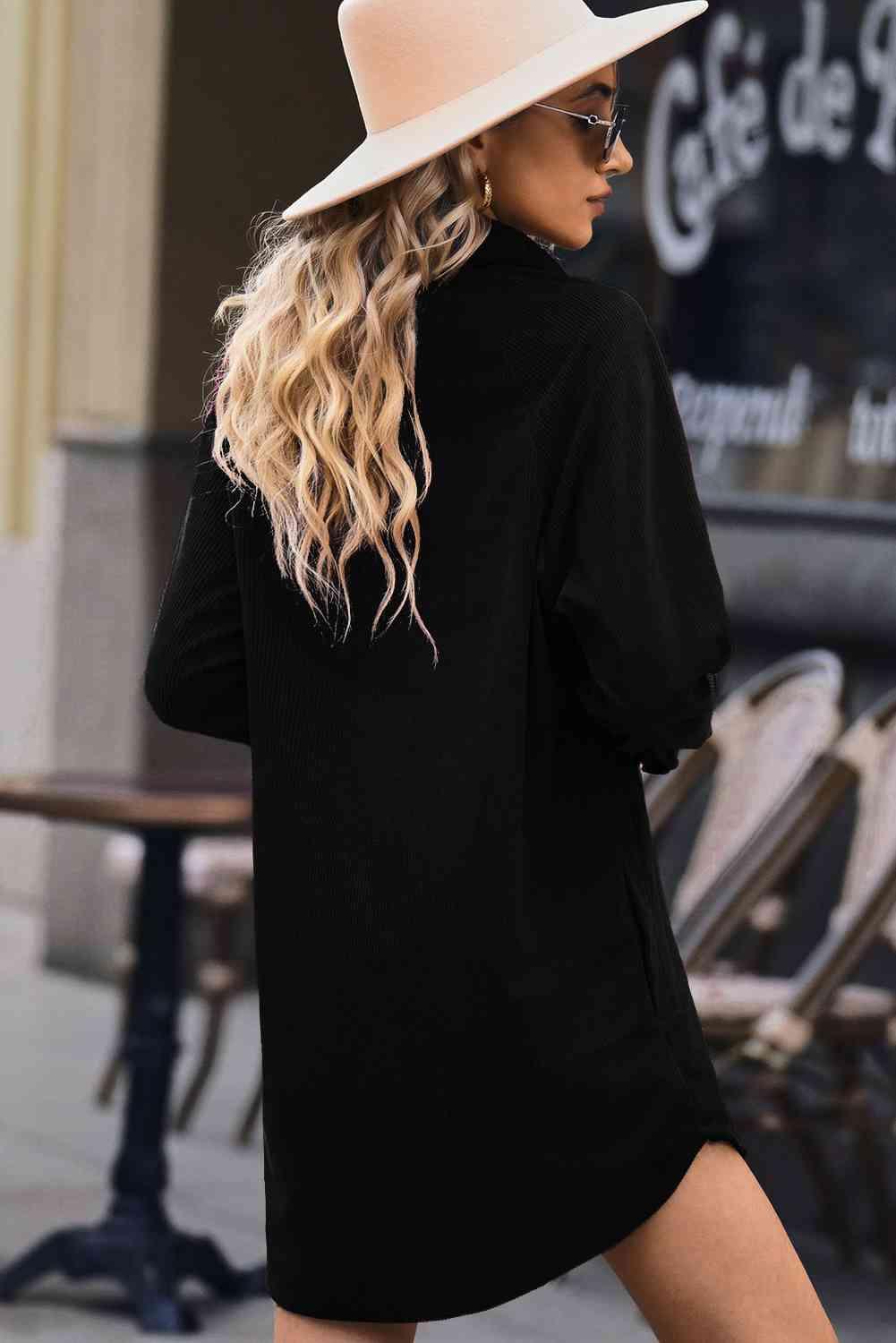 Button Front Curved Hem Raglan Sleeve Shirt Dress