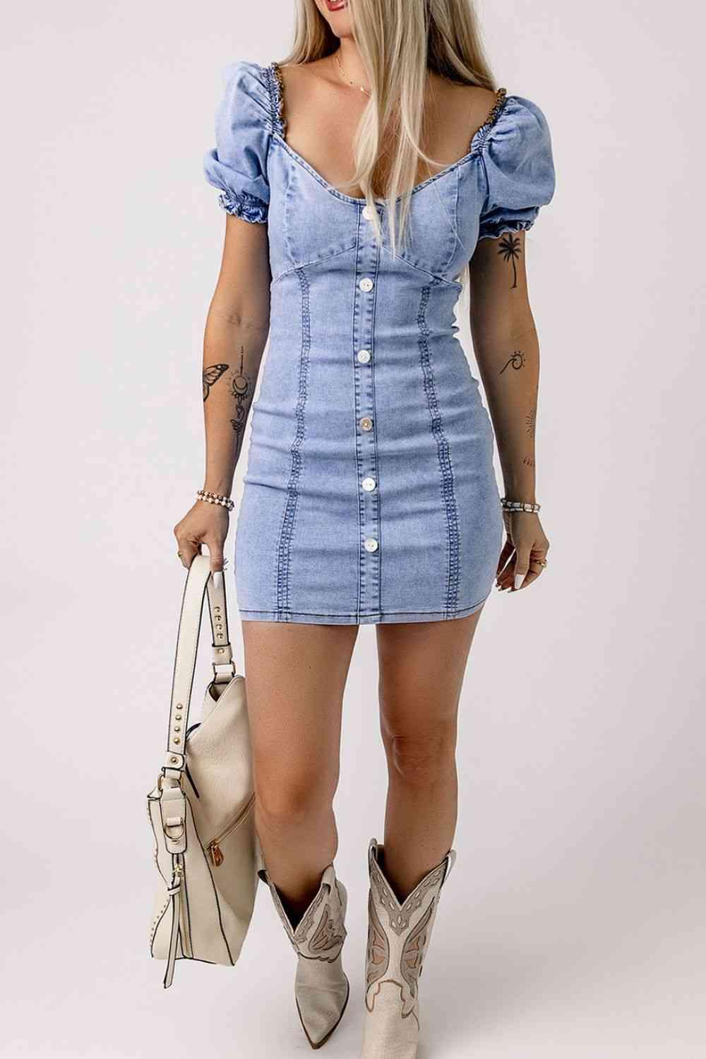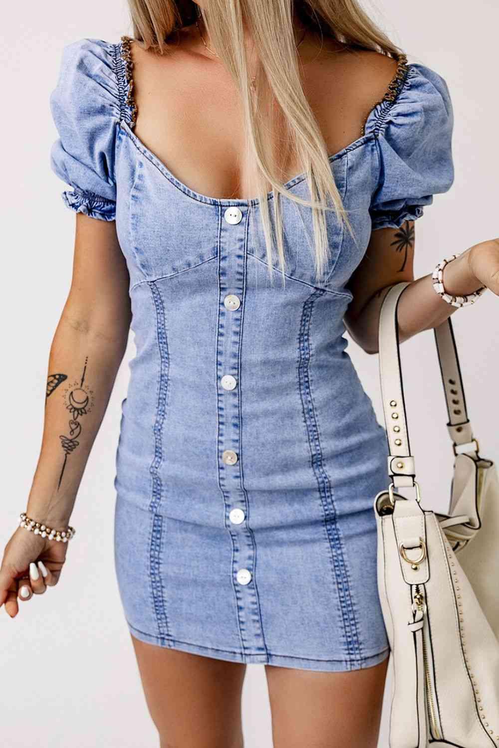 S: bust 34 in, waist 27 in, hip 33 in, sleeve length 11 in, length 32 in, hem width 31 in