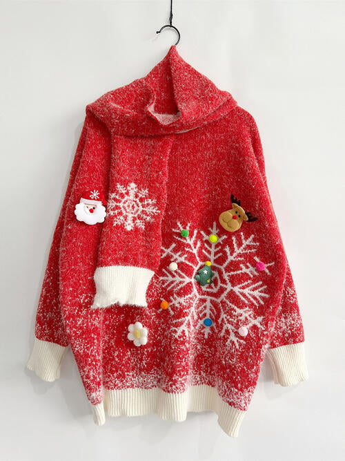 Christmas Element Round Neck Sweater and Scarf Set