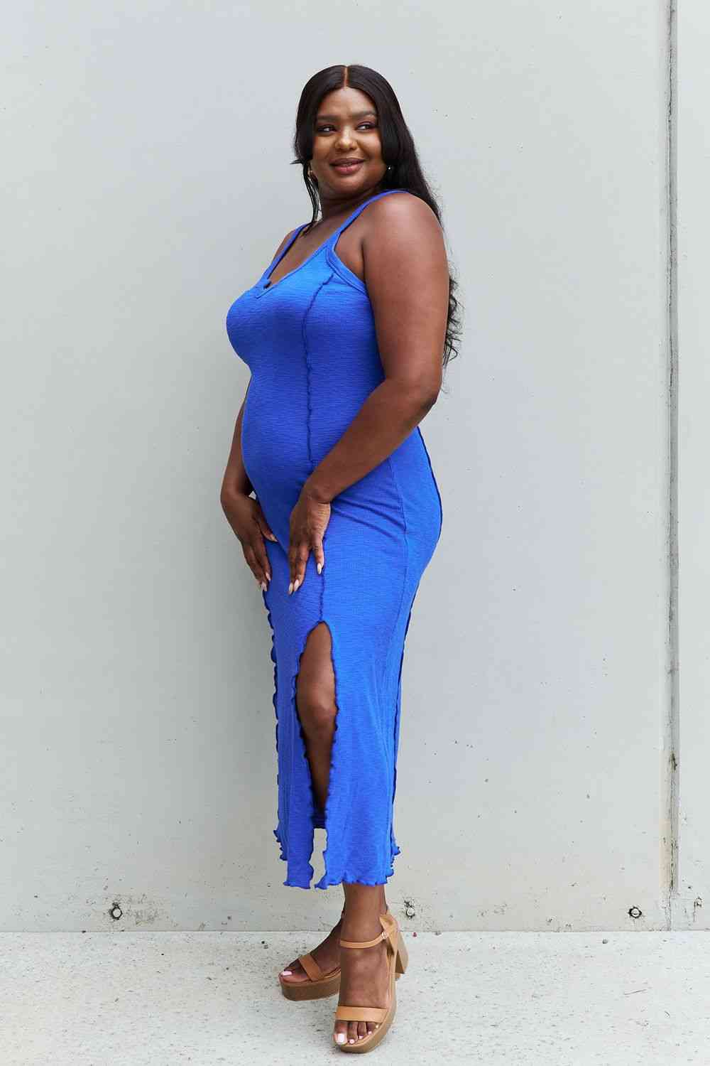 This dress combines comfort, sophistication, and a touch of allure, making you feel like the belle of the ball. This maxi dress features a tiny notch neck design that adds a unique and eye-catching element to the overall look. The subtle cutout creates a flattering frame for your neckline, adding a hint of femininity and charm. This dress boasts a merrow stitching technique that ensures durability and a flawless finish. The meticulous craftsmanship guarantees that every stitch is in place, delivering a garment that not only looks amazing but will also stand the test of time. The standout feature of this dress is the alluring slit that gracefully enhances your silhouette and adds a touch of drama to your outfit. It offers a glimpse of skin as you walk, exuding confidence and elegance with every step you take. Designed with versatility in mind, this maxi dress can be dressed up or down to suit any occasion. Pair it with high heels and statement accessories for a glamorous evening look, or dress it down with sandals and a floppy hat for a chic and relaxed daytime ensemble.