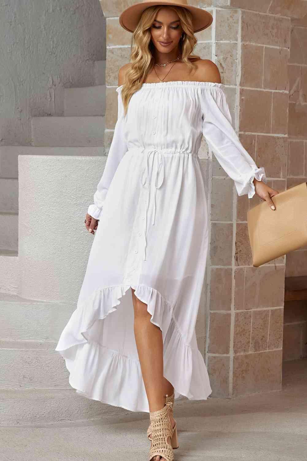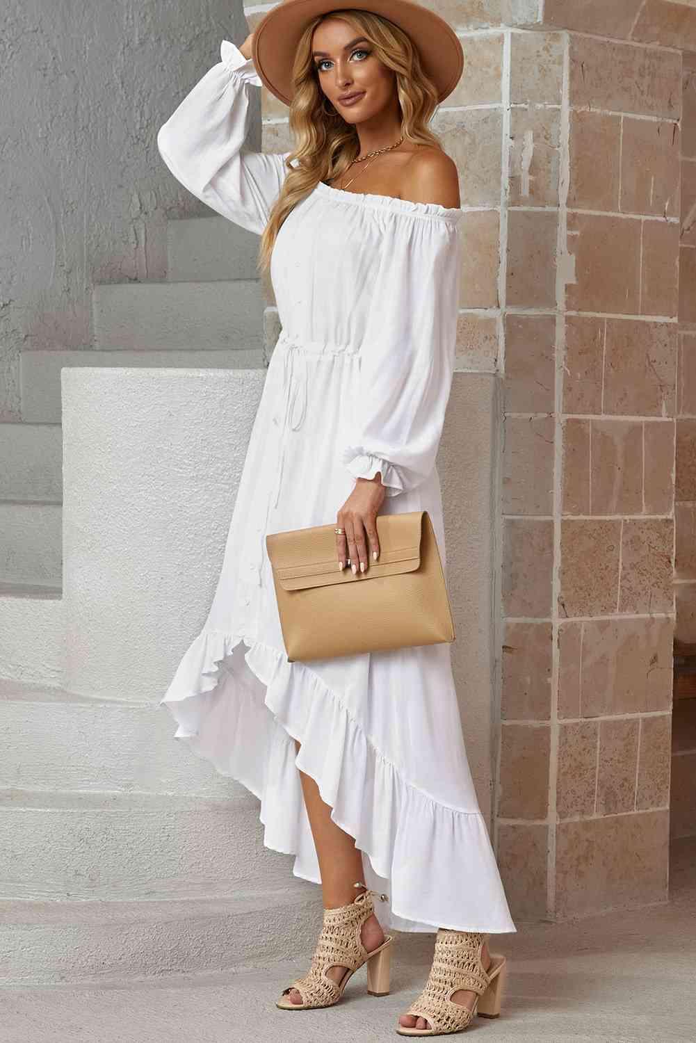 L: bust 44 in, waist 43 in, sleeve length 22 in, back length 51 in, hem width 58 in