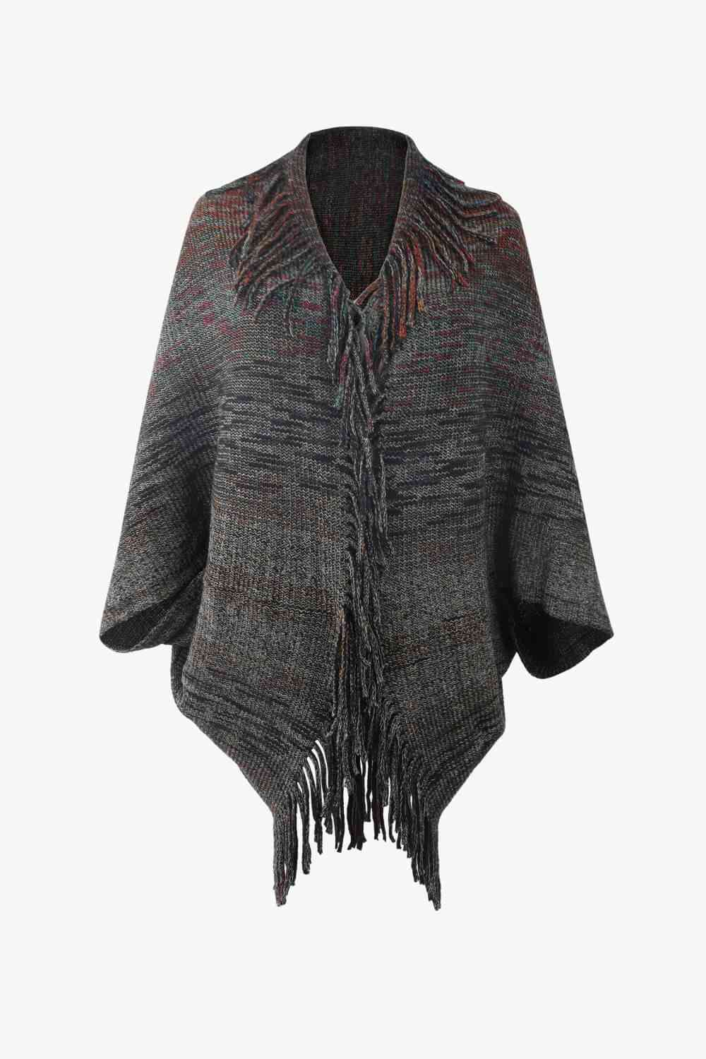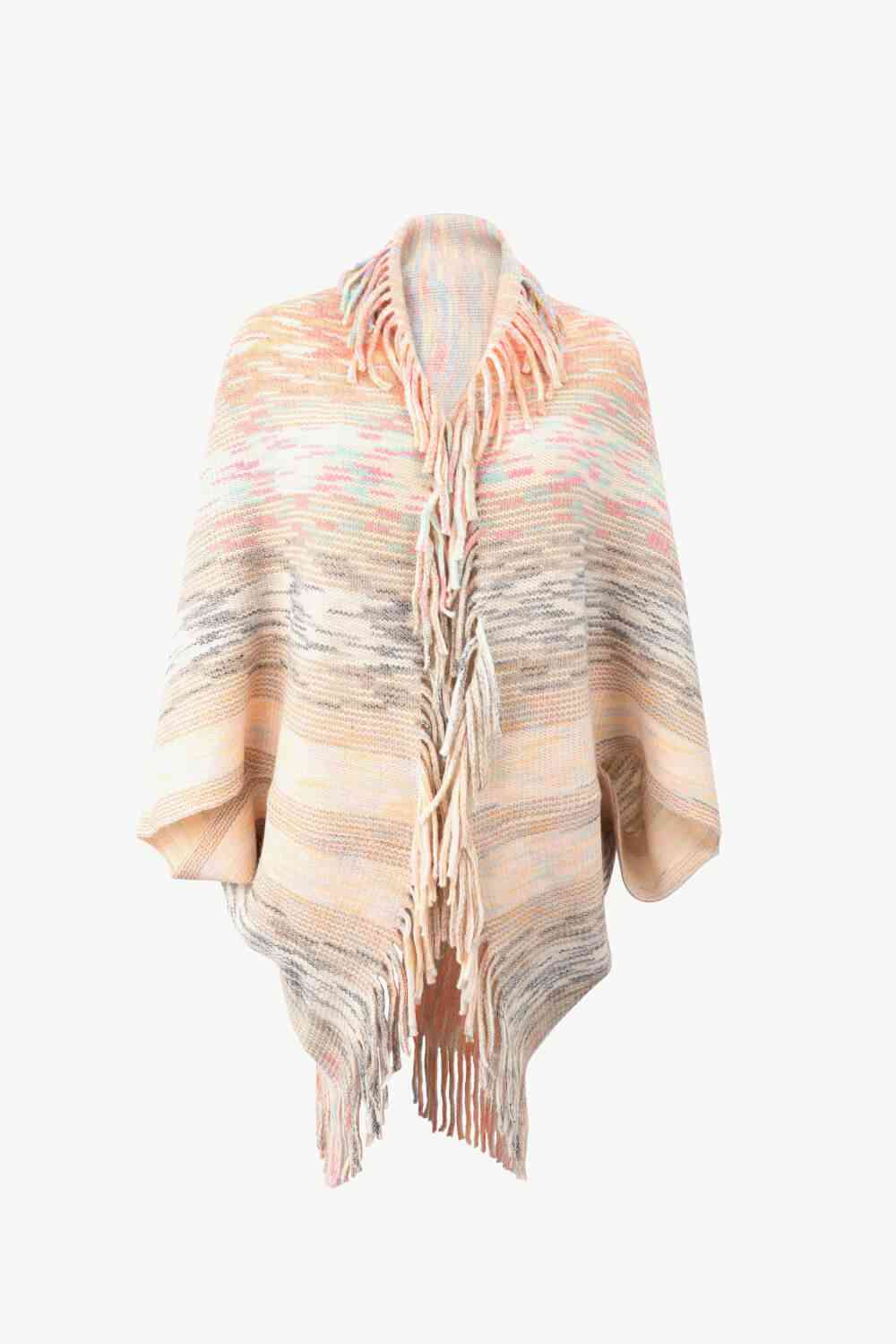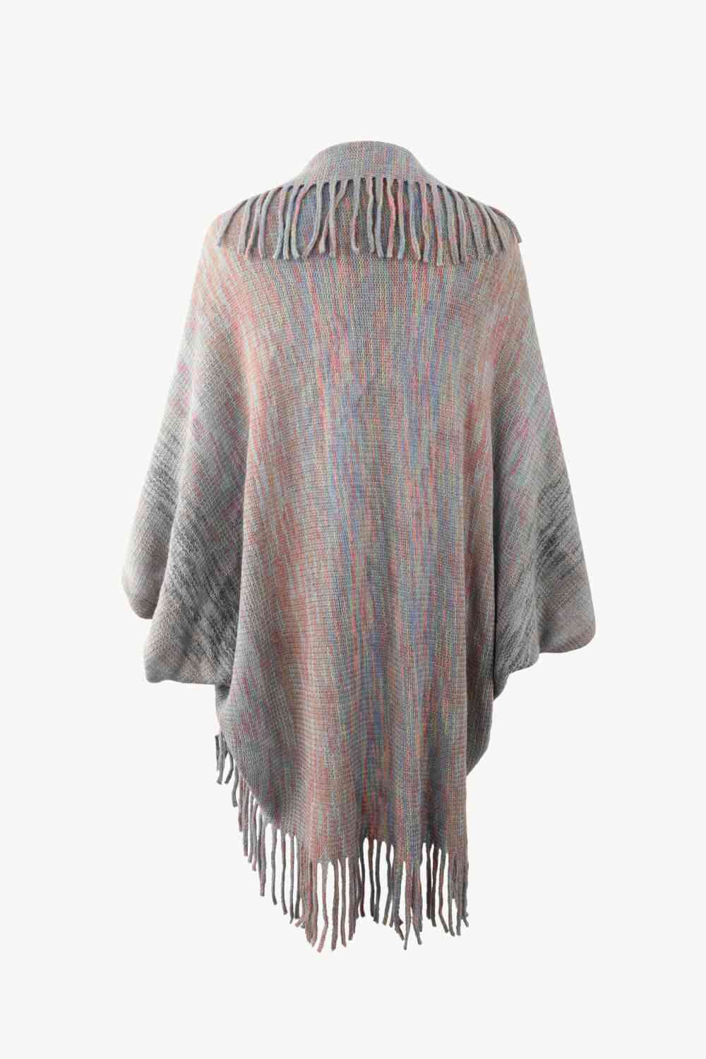 Multicolored Fringe Trim Poncho