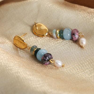 Natural Stone Freshwater Pearl Dangle Earrings - HayyaH - BRACELETS, EARRINGS, Jewelry, M^L, NECKLACES, Ship From Overseas, Shipping delay February 2 - February 21