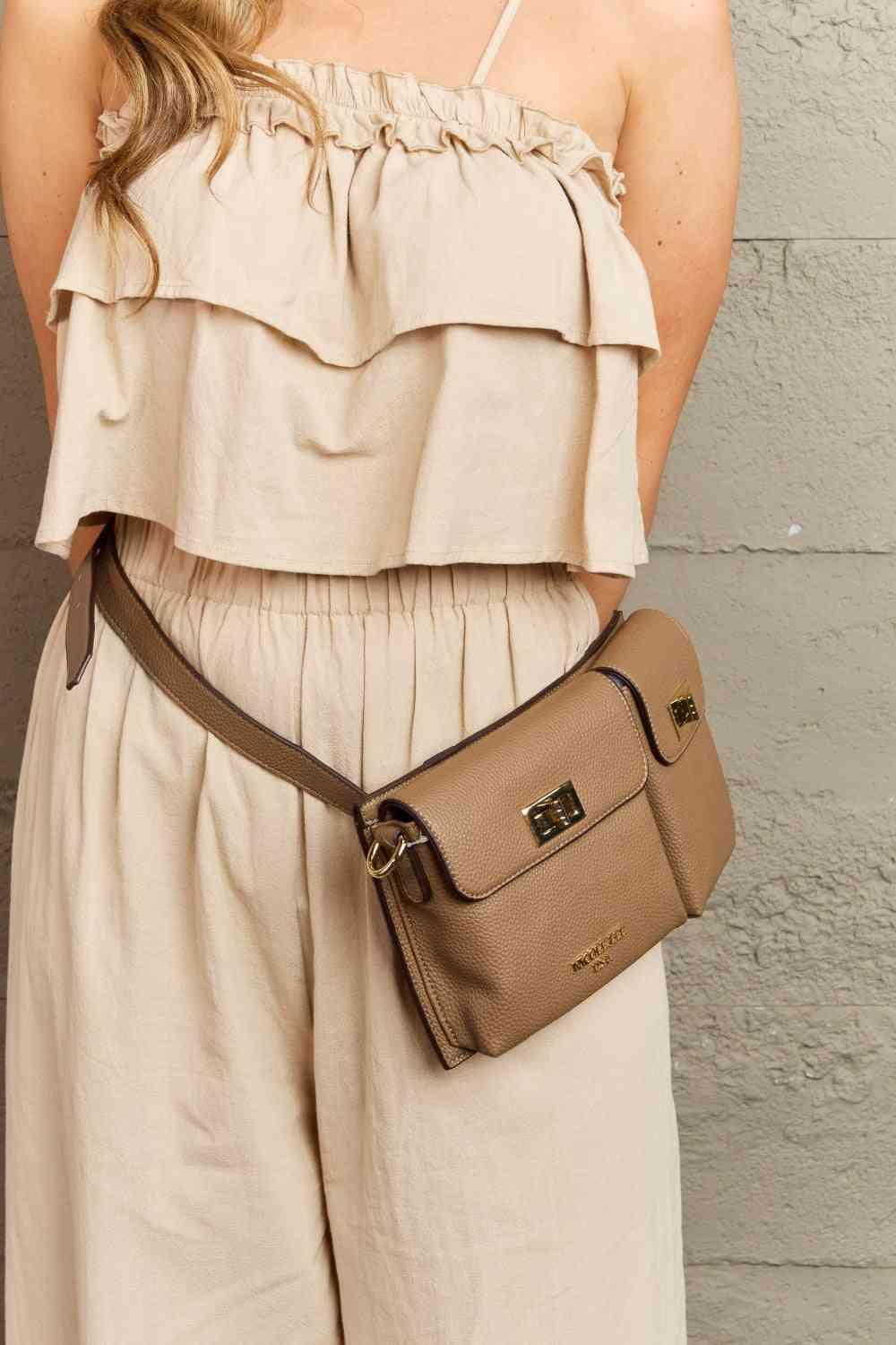 The multi-pocket fanny pack is crafted with vegan leather for a stylish and sustainable option. This sleek and compact design features multiple pockets, providing convenient storage for your essentials on the go. It's the perfect accessory for hands-free convenience and effortless style.