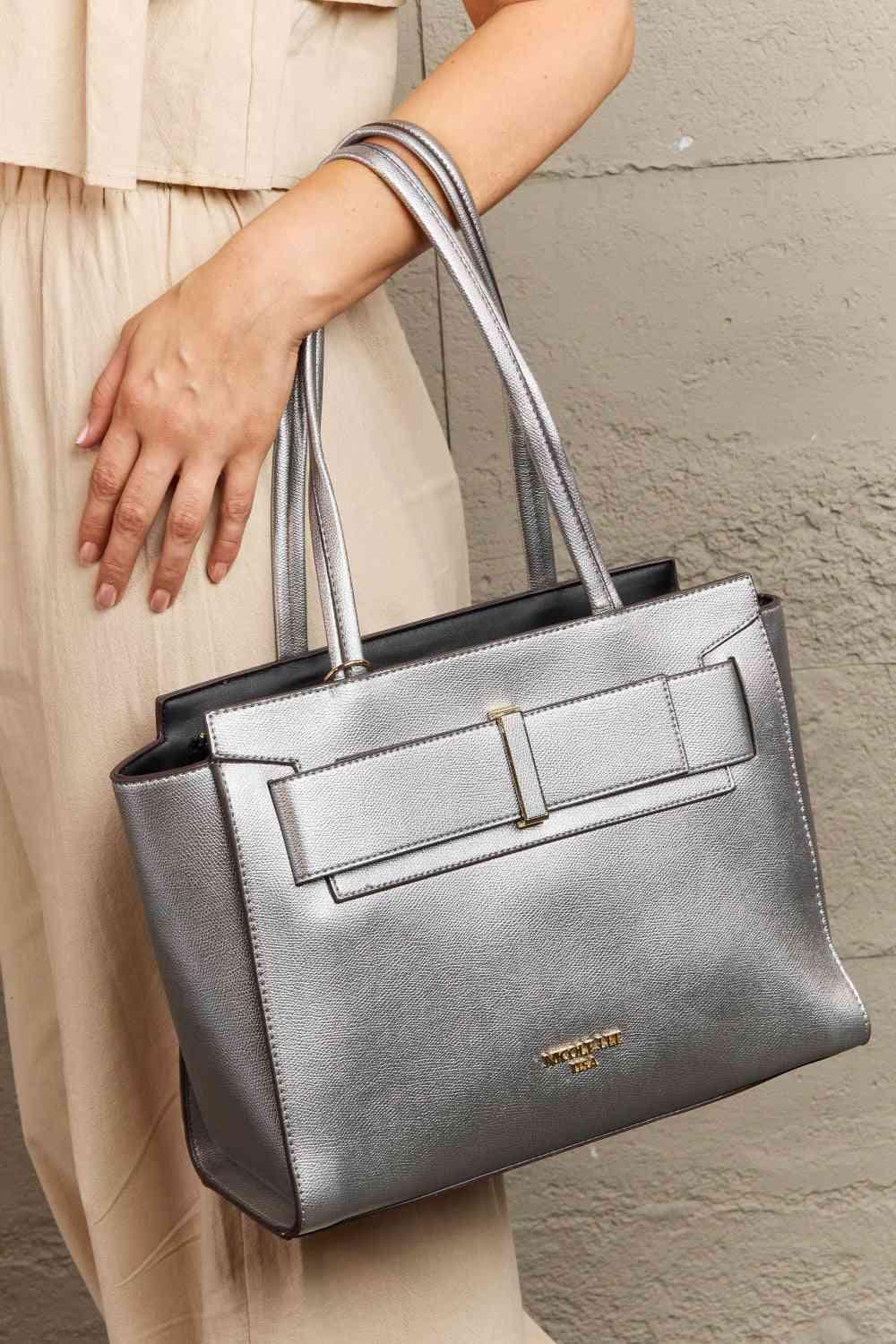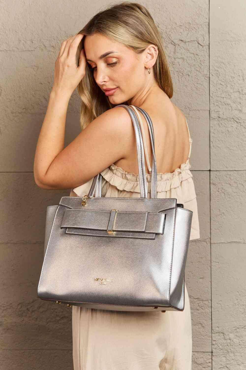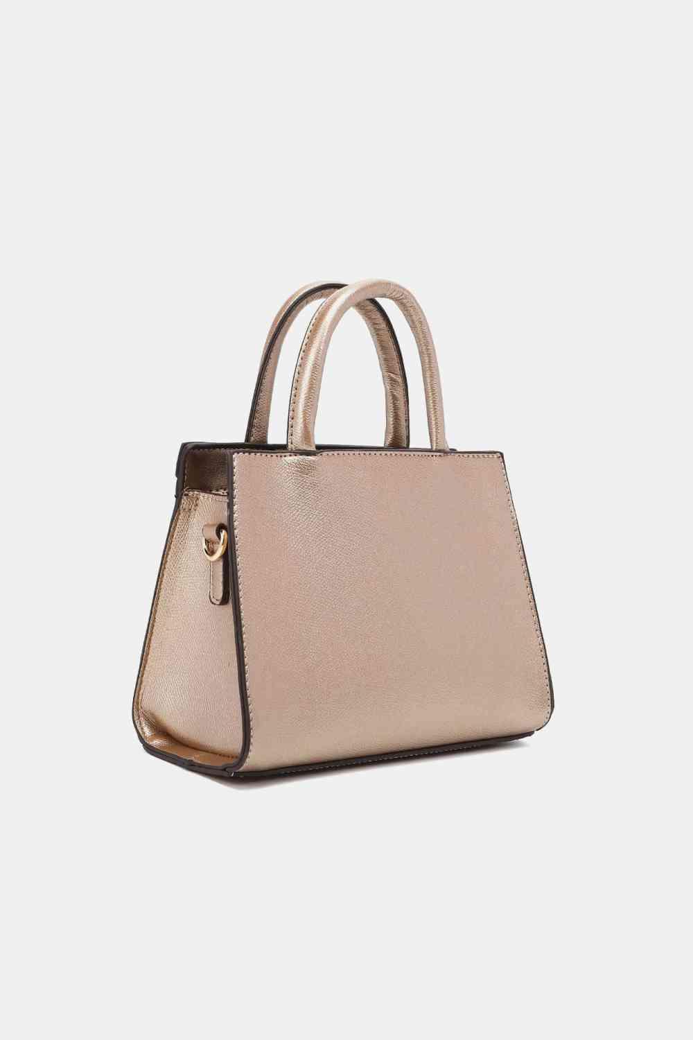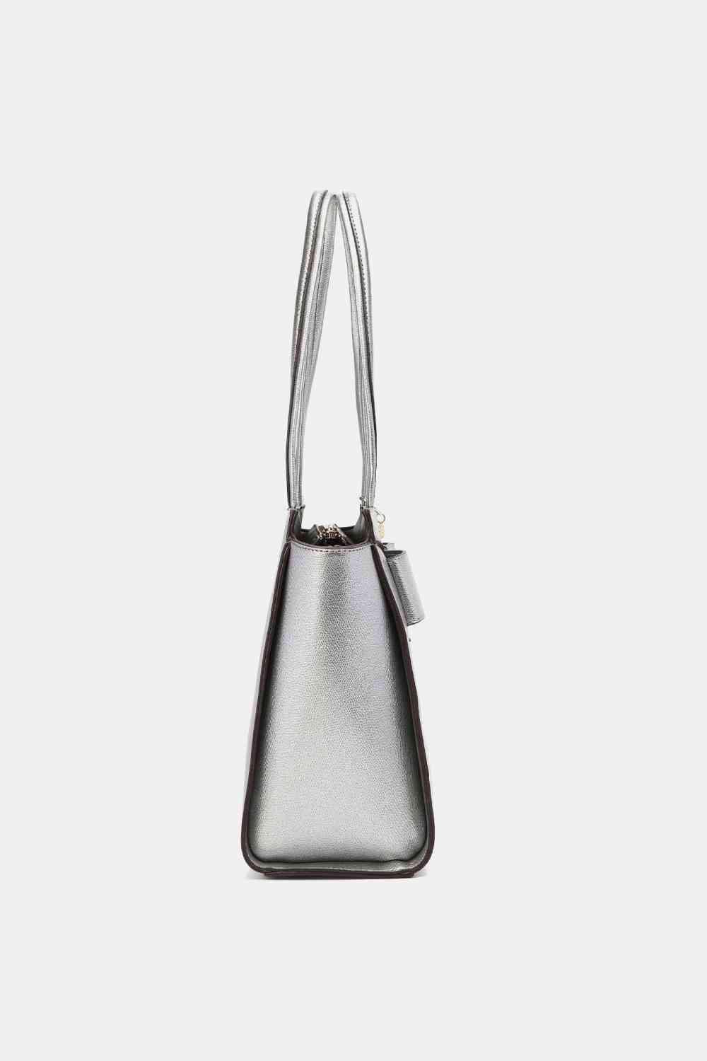 This set includes a spacious Satchel, a charming Mini Satchel, and a chic Clutch, providing you with multiple options to suit your needs and occasions. The Satchel features dual top straps with a 10" drop, offering both comfort and convenience when carrying it on your shoulder or in your hand. The Mini Satchel, with its adorable design, is perfect for those who prefer a smaller and more compact bag. It features dual top handles with a 3.5" drop, allowing for easy and comfortable carrying. Its dimensions are 8.75" L x 4.75" W x 6.75" H, making it a delightful companion for your day-to-day activities. Completing the set is the sleek Clutch, designed for those special occasions where you need just the essentials. The clutch measures 7.5"L x 1.5"W x 4.25"H, making it compact enough to hold in your hand or slip into a larger bag.
