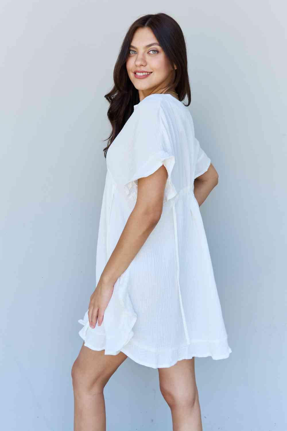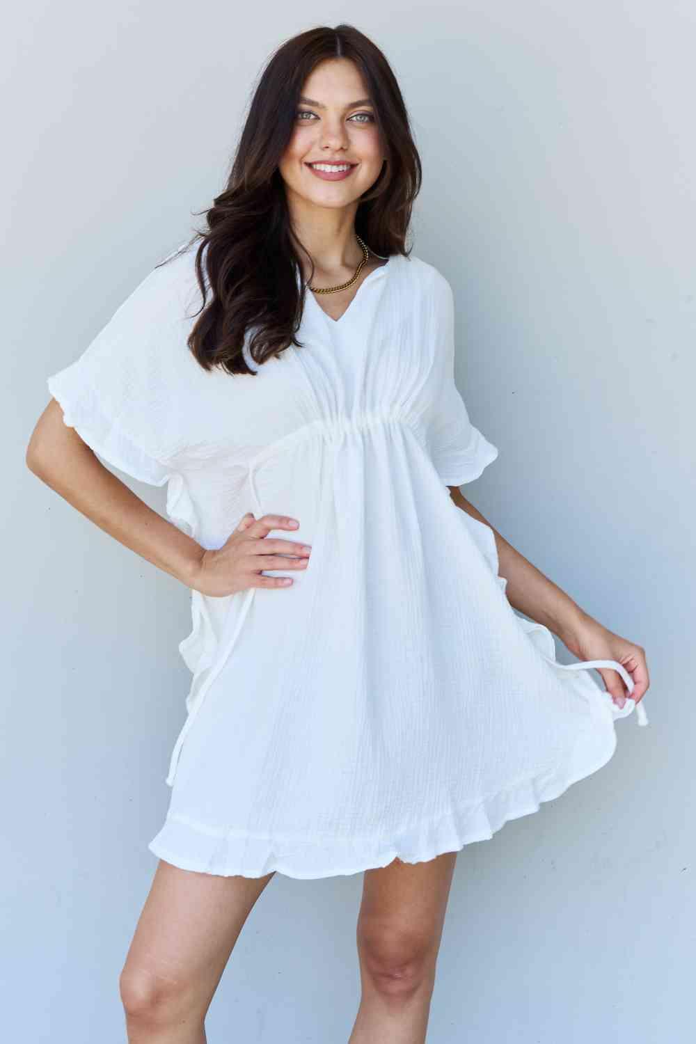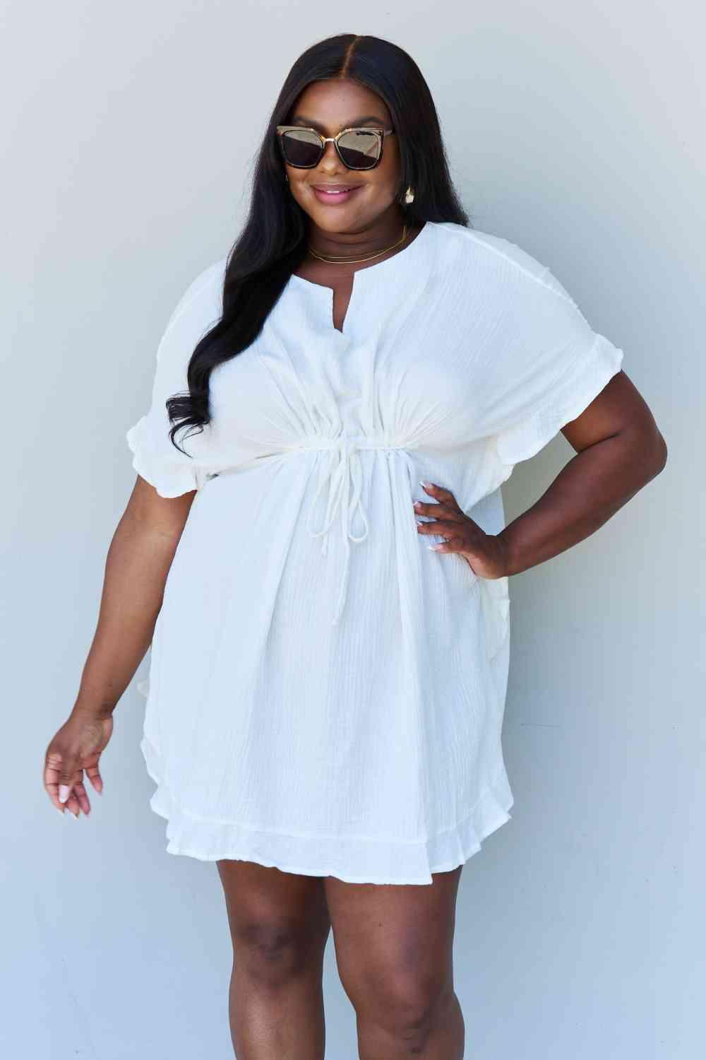Crafted from 100% cotton, this dress is designed to provide you with a soft, breathable, and luxurious experience. The drawstring waist feature allows you to effortlessly adjust the fit to your liking, ensuring both comfort and a flattering silhouette. Whether you prefer a more relaxed or fitted look, this dress has got you covered. The drawstring adds a touch of casual charm, while also accentuating your waistline for a feminine and elegant appearance. The ruffle hem detailing adds a playful and romantic flair to the dress. With its delicate and flowy design, it creates a graceful movement as you walk, making you feel like you're floating on air. The ruffles also lend a subtle touch of femininity, elevating the overall aesthetic of the dress. This dress is perfect for a wide range of occasions. Dress it up with some heels and accessories for a formal event or a night out on the town. Alternatively, pair it with sandals or sneakers for a more casual and laid-back look, perfect for brunches, picnics, or strolling along the beach. The soft cotton fabric is not only incredibly comfortable but also easy to care for. It's machine washable, allowing for convenient and hassle-free maintenance, so you can spend more time enjoying the dress and less time worrying about its upkeep.