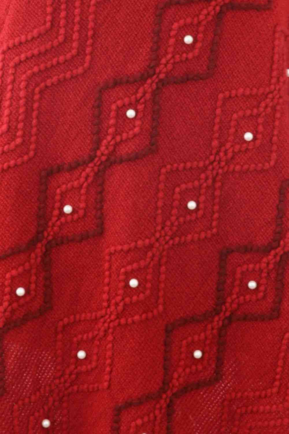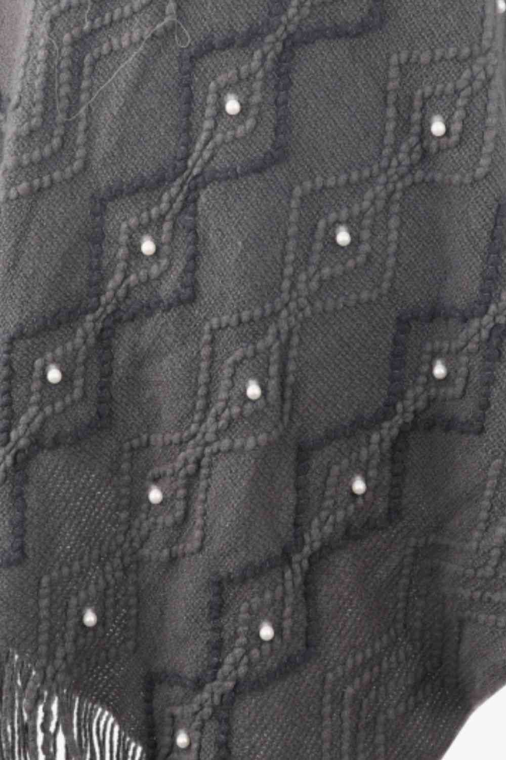 Pearl Trim V-Neck Fringe Hem Poncho