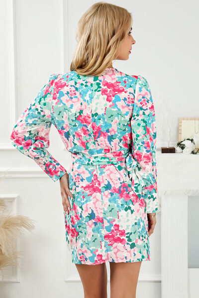 Printed Surplice Tie Waist Mini Dress - HayyaH