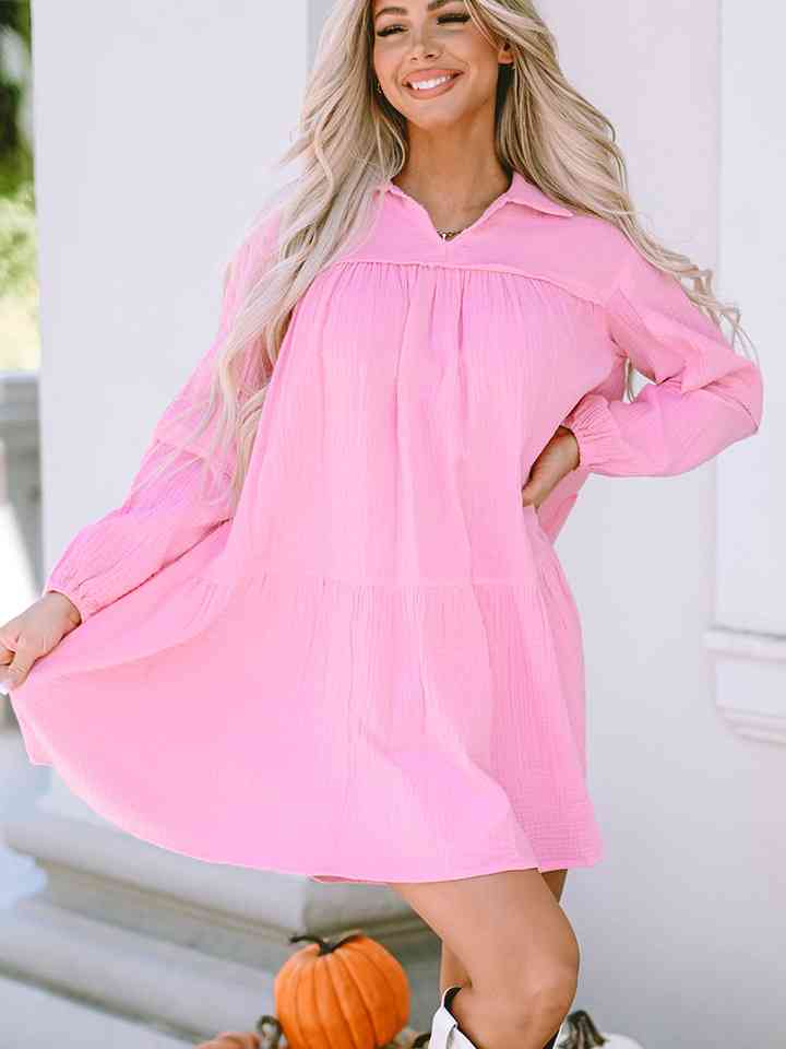 - Neckline: Collared neck