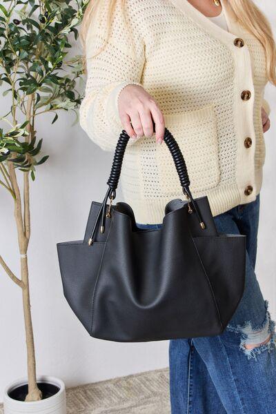 - Material: Advanced Leather like material; Unique top handle braided.