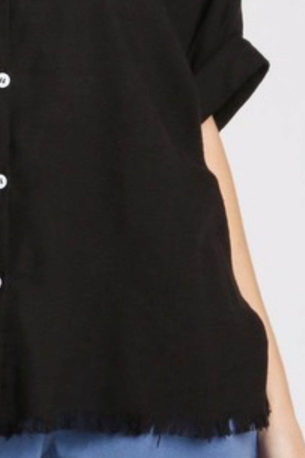 • Features: Buttoned, Raw Hem