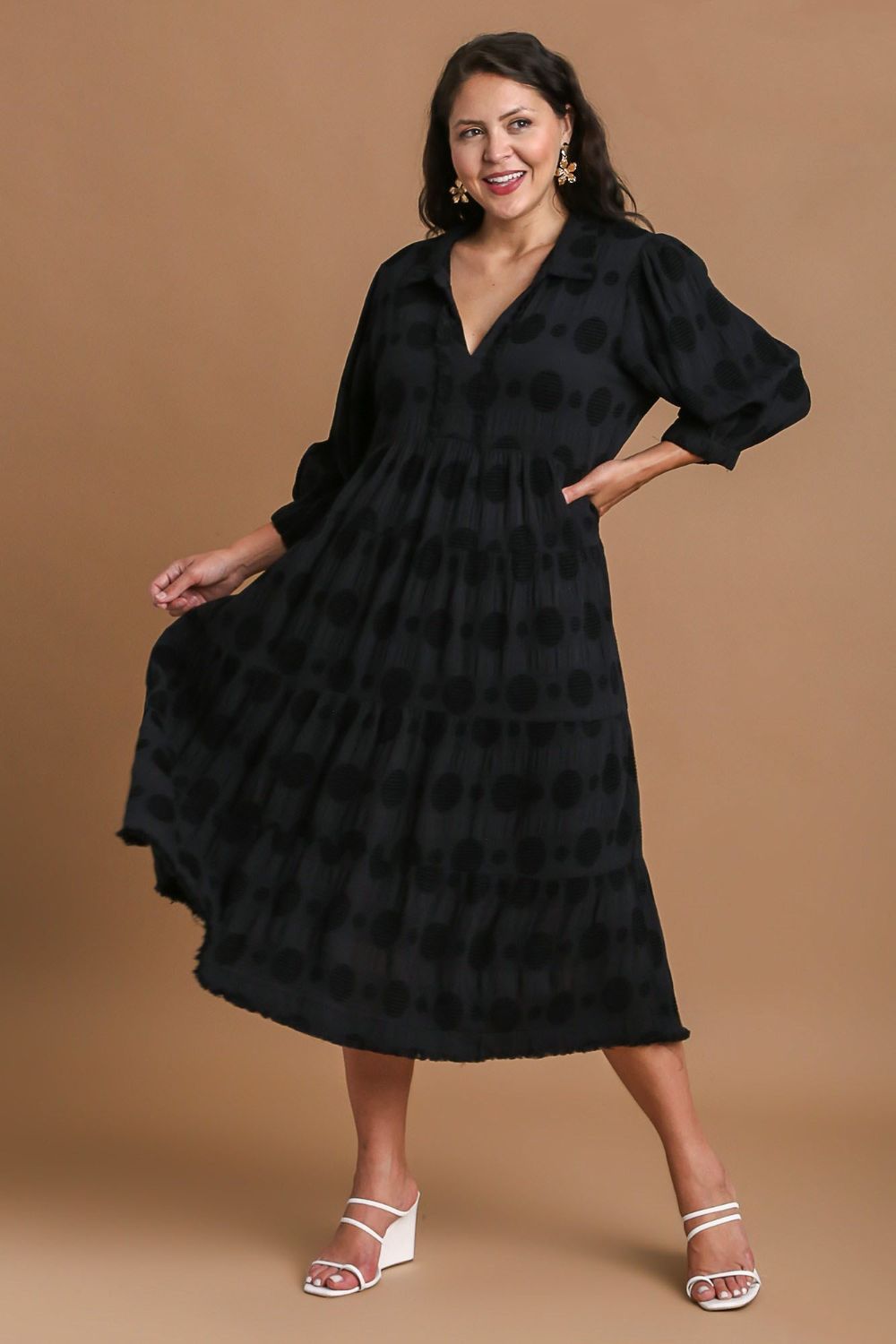 Make a statement with the sophisticated Solid Dotted Jacquard Midi Dress. This elegant dress features a timeless dotted jacquard pattern that adds a touch of texture and dimension. With a midi length, it offers a flattering silhouette that is perfect for both casual and formal occasions. Elevate your style with this chic and versatile dress that is sure to turn heads.