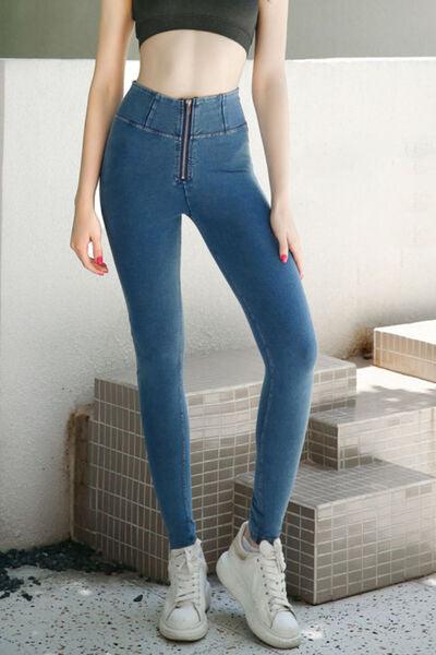 Zip High Waist Skinny Pants - HayyaH - BOTTOMS, Ship From Overseas, Y.P.X